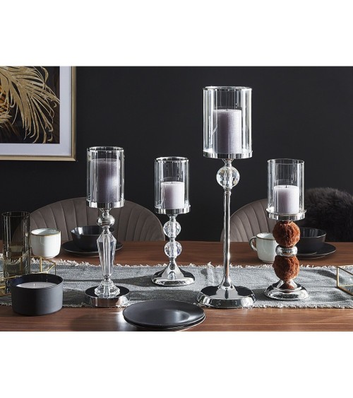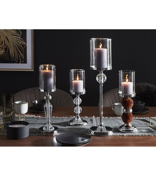 Chandelier bougeoir argenté décoratif. Ce chandelier pour bougies épaisses est parfait pour introduire une ambiance particulière. Avec un pied décoratif en verre, il donne à chaque intérieur une allure élégante. Il est doté dun verre transparent protectif et dun feutre antidérapant sous le support en métal.Détails: Type de produit: Bougeoir Style: Glamour Couleur principale: Argenté Type de matière: Verre Matière principale: Verre Fabriqué à la main: Non Dimensions: Profondeur: 12 cm Largeur: 12 cm Hauteur: 42 cm Poids: 1 kg L`offre inclue: 1 x Bougeoir Caractéristiques clés: Style élégant, Meuble attrayant pour l'intérieur, De haute qualité, Facile à entretenir et extrêmement durable, Multifonctionnel Informations d`assemblage: Ne nécessite pas d'assemblage Conseils de maintenance: Verre: 1.Pour éviter les rayures, n'utilisez pas de nettoyants crème 2.Nettoyez avec un chiffon et un nettoyant doux ou un conditionneur pour verre. Essuyez immédiatement après le nettoyage.