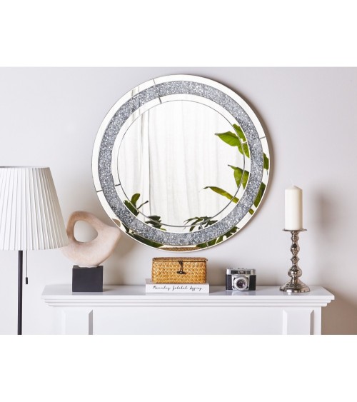 Miroir mural rond avec cadre décoratif argenté. Complétez votre salon, votre entrée ou votre chambre avec ce miroir d'accent. Fabriqué en verre de haute qualité, il présente un cadre décoratif avec des pierres en acrylique. Le miroir rond est particulièrement charmant lorsqu'il est suspendu au-dessus d'une table console, d'une armoire ou d'une commode.Détails: Type de produit: Miroir Style: Glamour Couleur principale: Argenté Type de matière: Verre Matière principale: MDF Matière secondaire: Plexiglass Forme: Rond Finition: Brillant Dimensions: Profondeur: 2 cm Largeur: 70 cm Hauteur: 70 cm Poids: 7 kg L`offre inclue: 1 x Miroir Caractéristiques clés: Cadre équipé de crochets de suspension pour accrochage au mur , Décoratif et fonctionnel, Elément élégant pour l'intérieur, Agrandit l'intérieur visuellement, Matières de haute qualité Informations d`assemblage: Ne nécessite pas d'assemblage Conseils de maintenance: MDF: 1.Nettoyez avec un chiffon et un détergent doux. Essuyez bien après le nettoyage. Verre: 1.Pour éviter les rayures, n'utilisez pas de nettoyants crème 2.Nettoyez avec un chiffon et un nettoyant doux ou un conditionneur pour verre. Essuyez immédiatement après le nettoyage.