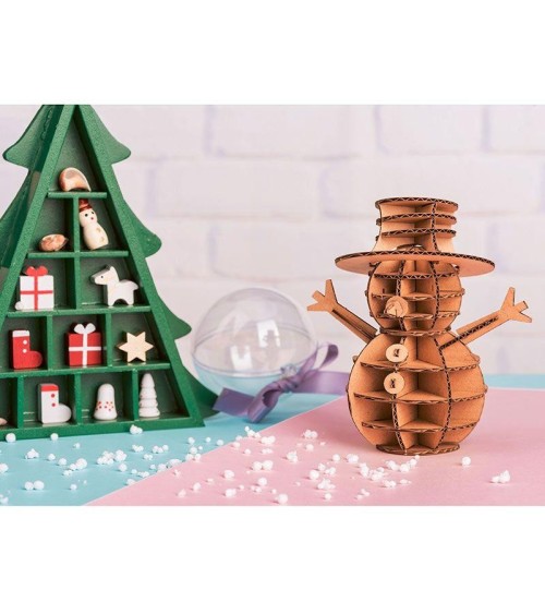 Maquette à faire soi-même Bonhomme de neige. Cette maquette en carton, livrée à plat, fera le bonheur de vos enfants, à partir de 7 ans. Il leur apprendra la précision et la persévérance. Puis la maquette est un joli objet de décoration, facile à personnalisée, avec une bombe de peinture par exemple. Notice incluse. Dimensions : 12,5 x 6 x 6 cm