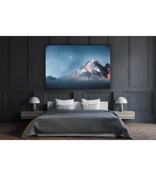 Photographie d'art de l'artiste Hugo Grandcolas sur support Alu-Dibond format 60x90 cm.Chassis rentrant au dos inclus pour un accrochage simple et une belle mise en valeur de la photo.Le tirage est délivré avec certificat d'authencité.Description de la photographie : Argentière en France. Les dernières lueurs sur l'Aiguille Verte étaient si magiques, le soleil couchant donne de belles tonalités au sommet. La lune attend patiemment son tour pendant que les nuages commencent à danser. Présentation de l'artiste :Artenza vous présente Hugo Grandcolas, photographe outdoor.Son goût prononcé pour le voyage et sa passion pour les belles images l'ont amené à débuter la photographie. Hugo souhaite à travers ses photographies donner conscience de la beauté de notre monde, et sensibiliser à la préservation de la planète.