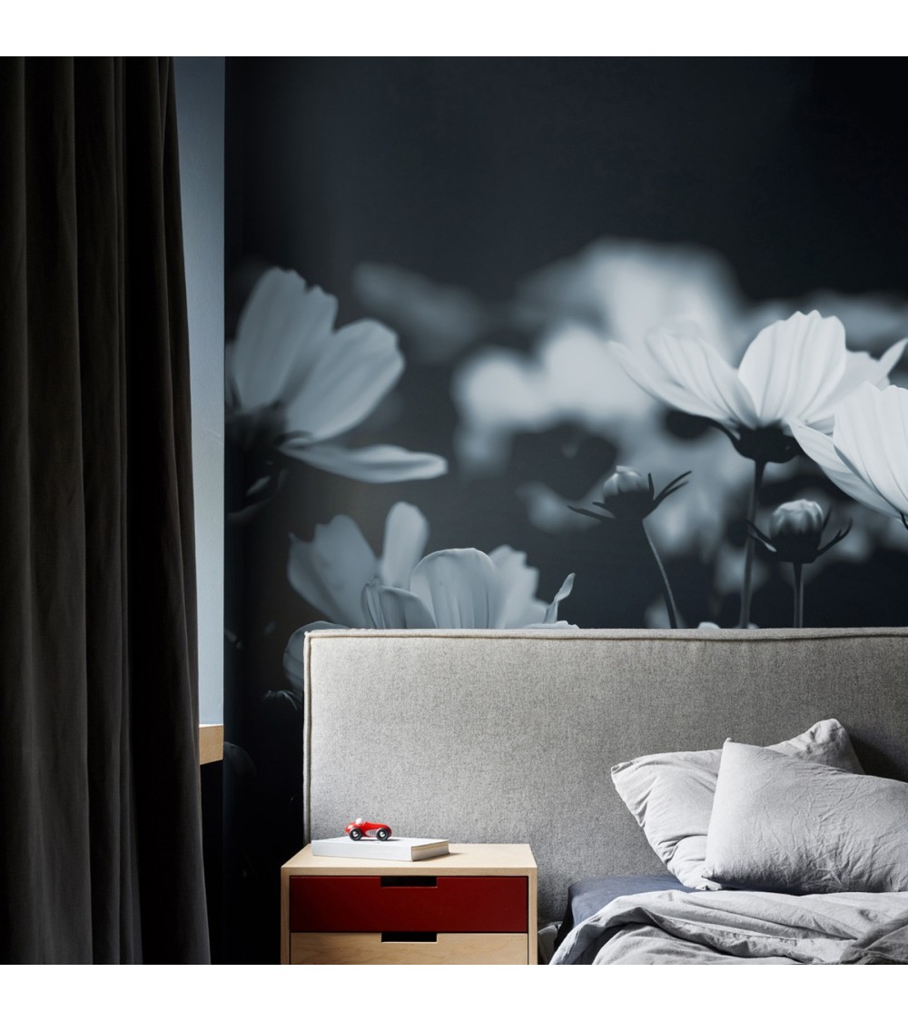 Papier peint panoramique fleurs de cosmos 340 x 250 gris
