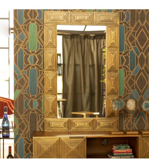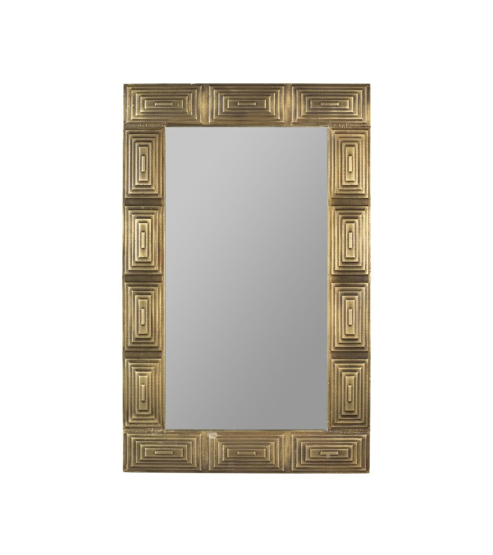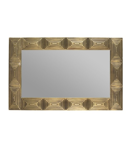 Vous êtes à la recherche d'un objet déco qui sied à merveille aux intérieurs chics et raffinés ? Choisissez le miroir rectangle en bois 110x70 cm Volan. Avec son cadre métallique doré à effet 3D et aux motifs géométriques, ce miroir ajoute une touche vintage à la déco. Que l'on fixe Volan au mur à l'horizontale ou à la verticale, il devient un incontournable de la routine quotidienne.