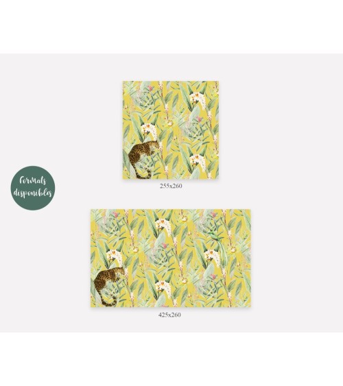 Composé de 5 lés de papier peint, chaque lés mesure 85 cm de largeur sur 260 cm de hauteur.Papier peint et procédé d'impression totalement écologique, Made in France.- Pose: Encoller directement le mur avec une colle spéciale papier peint intissé, Pose en bord à bord, ne rétracte pas lors du séchage (grande stabilité). Indéchirable, cette toile intissé se manipule aisément, facile à couper au cutter- Nettoyage : Une éponge et de l'eau savonneuse permettent d'effacer les salissures- Qualité : Papier peint 165gr/M², indéchirable , imperméable- Développement durable : Procédé d'impression à base d'encre 100% végétales sans solvant, Emission dans l'air : A+, labellisé Green Guard et Nordic Environmental- Couleurs : Des couleurs éclatantes