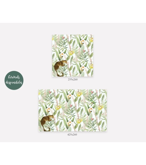 Composé de 3 lés de papier peint, chaque lés mesure 85 cm de largeur sur 260 cm de hauteur.Papier peint et procédé d'impression totalement écologique, Made in France.- Pose : Encoller directement le mur avec une colle spéciale papier peint intissé, Pose en bord à bord, ne rétracte pas lors du séchage (grande stabilité). Indéchirable, cette toile intissé se manipule aisément, facile à couper au cutter- Nettoyage : Une éponge et de l'eau savonneuse permettent d'effacer les salissures- Qualité : Papier peint 165gr/M², indéchirable , imperméable- Développement durable : Procédé d'impression à base d'encre 100% végétales sans solvant, Emission dans l'air : A+, labellisé Green Guard et Nordic Environmental- Couleurs : Des couleurs éclatantes