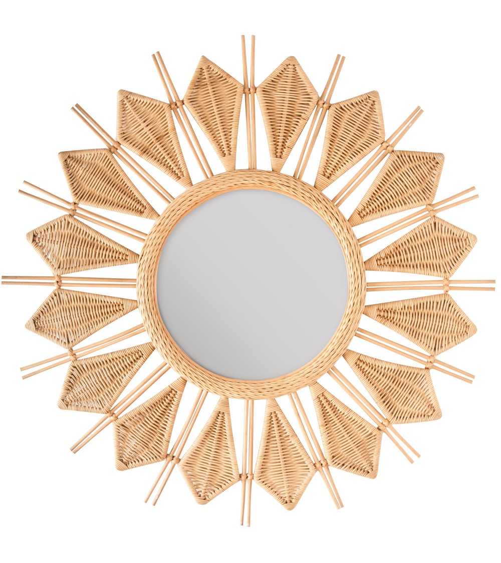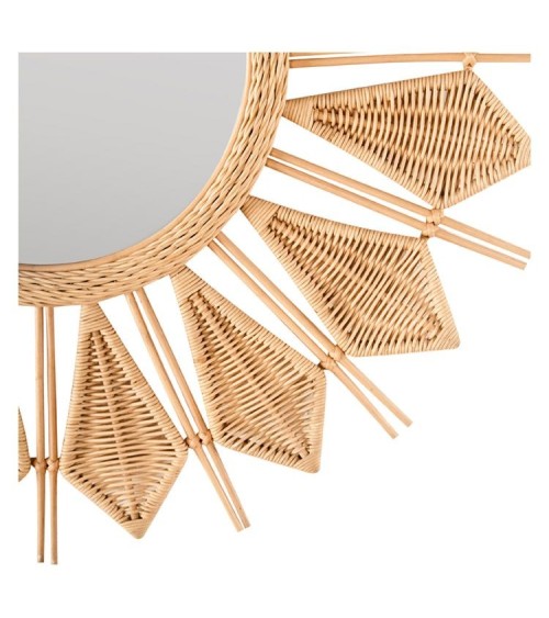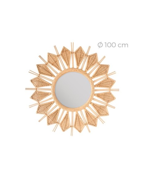 Poids : 1.7kg Dimensions: - Diamètre total : 100 cm- Epaisseur : 4 cm- Diamètre du miroir : 39,5 cmEntretien : Nettoyer le tressage du miroir avec une éponge imbibée d'eau chaude additionnée de cristaux de soude. Sécher rapidement.Materiaux : RotinInformations colis : 101 x 101 x 5 cm