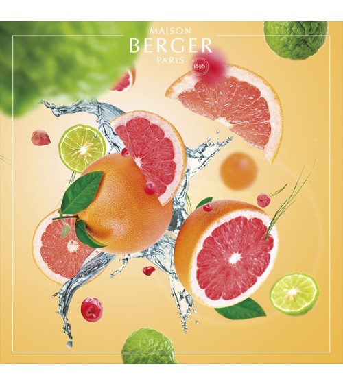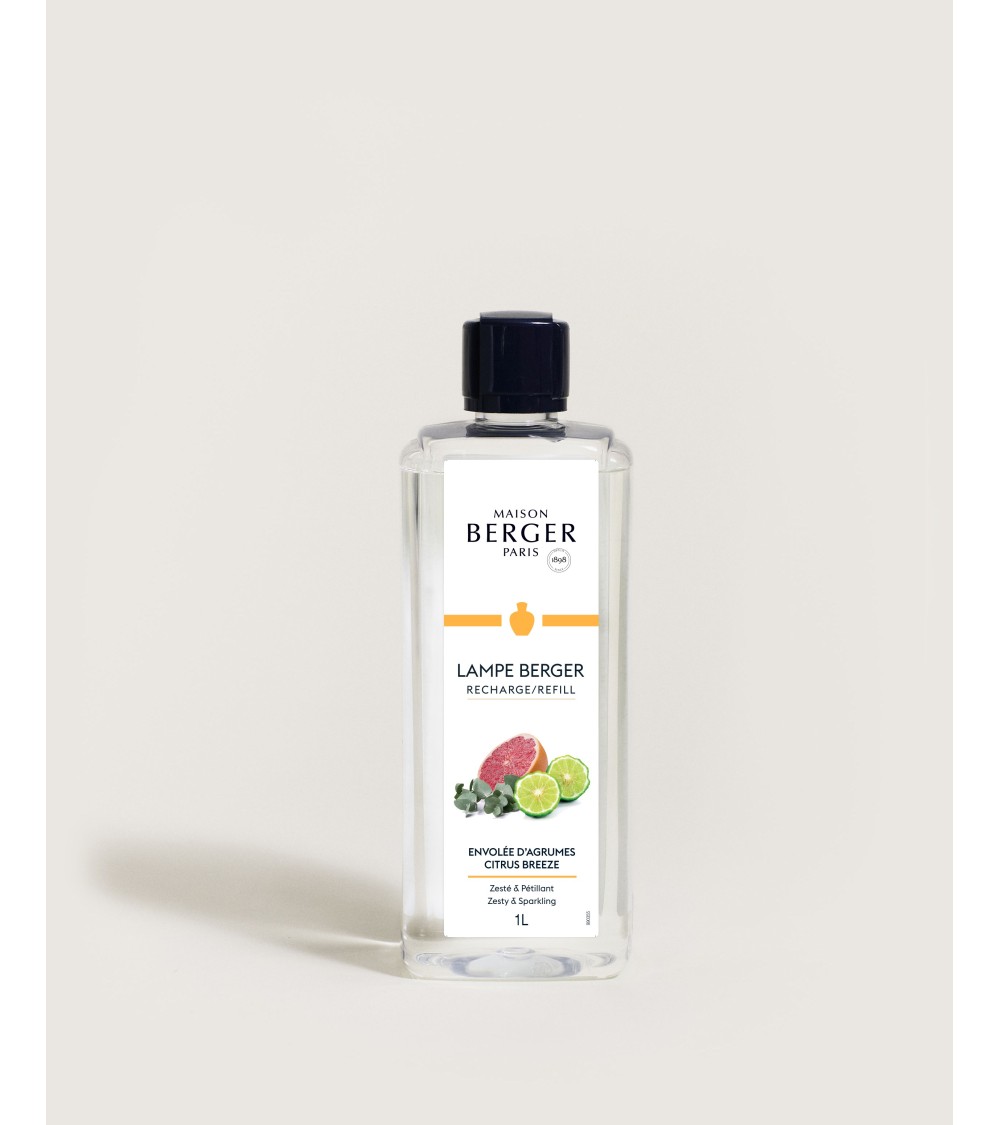 Le parfum Lampe Berger Envolée d'Agrumes 1L donne la part belle au pamplemousse. Son mariage avec la bergamote acidulée ainsi qu'avec l'eucalyptus aromatique donne le ton de cette fragrance zestée et pétillante. Celle-ci se poursuit sur les épices de poivre rose et de cardamome soulignées par la transparence des notes aquatiques. Le fond boisé chaleureux composé de vétiver, de patchouli, de mousse de chêne et de musc, donne une patine vintage à l'ensemble. Un parfum chic et moderne créé en collaboration avec le designer américain Jonathan Adler.Gestuelle : Depuis 1898, la Lampe Berger est entrée dans le quotidien des français. Destinée au départ à purifier l'air en neutralisant les odeurs, elle fut transformée en objet décoratif et parfumant dans l'entre-deux-guerres, investissant progressivement la sphère privée. Sa double action est aujourd'hui très appréciée.Parfums : Élaborés par les maîtres-parfumeurs grassois en collaboration avec le service recherche et développement de la marque, chaque parfum Maison Berger Paris est unique. Une large offre de fragrances est disponible. L'exigence est à son plus haut niveau concernant la qualité des produits proposés, les substances diffusées sont régulièrement contrôlées par des laboratoires indépendants. C'est la garantie pour vous de l'absence de fumées et de polluants dans l'air.