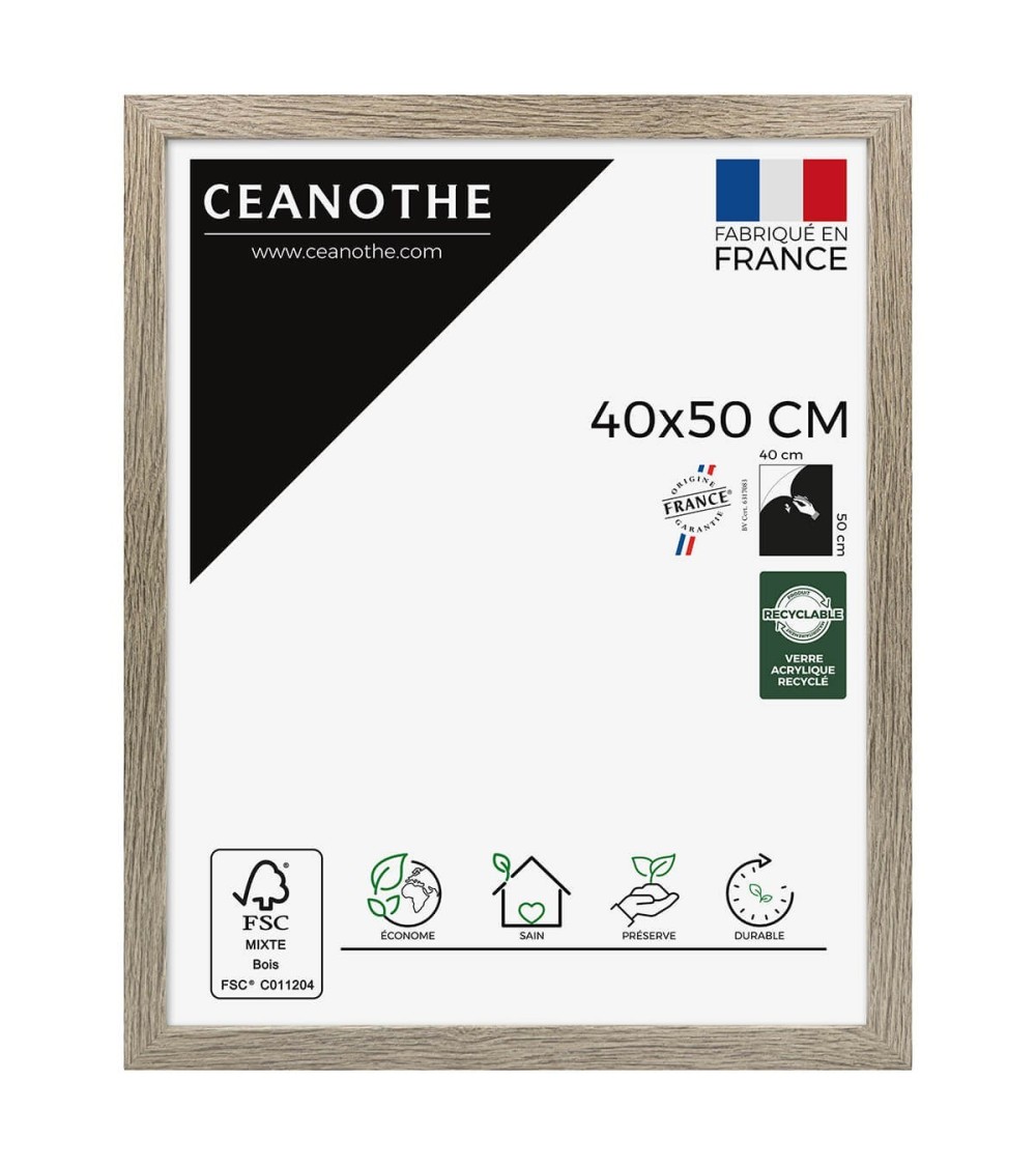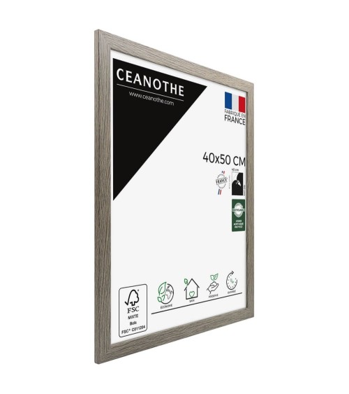 Protégez et mettez en avant toutes vos photos grâce au cadre bois Nordique et son verre acrylique recyclé. Ce cadre photo format 40x50 cm est idéal pour mettre en avant des photos, posters ou affiches grand format de 40x50 cm. Ajoutez un passe-partout pour protéger et mettre en avant dautres formats de photos et posters avec ce cadre.La couleur Taupe de ce cadre est naturel et authentique. Elle fait ressortir toutes vos plus belles uvres et photos tout en apportant un effet naturel haut de gamme à votre intérieur. Cadre Home déco facile à accrocher, il trouvera naturellement sa place dans toutes les pièces de la maison : hall dentrée, salon, chambres à coucher. Le cadre sublimera facilement un grand nombre de photos avec une touche déco très tendance. Ce cadre photo bois 40x50 cm est en bois reconstitué naturel, un matériau solide, naturel et esthétique. Ses dimensions extérieures sont 535x438x12 mm et se compose de 4 baguettes fines travaillées et de qualité. Il apportera de la profondeur à vos photos avec un rendu tendance très qualitatif. Les finitions de ce cadre sont soignées. La couleur de cette gamme Nordique fait de ce cadre une valeur sûre que vous garderez longtemps.Fabriqués en France dans le respect de lenvironnement, tous les cadres de la collection Nordique sont confectionnés à partir de bois reconstitué certifié FSC. Parfait pour la décoration, il est léger et 100% recyclable.Depuis 1975, Ceanothe perfectionne au quotidien son savoir-faire et expertise sur lencadrement, la mise en valeur photographique et la décoration murale. Une société française engagée dans une démarche éco-responsable.