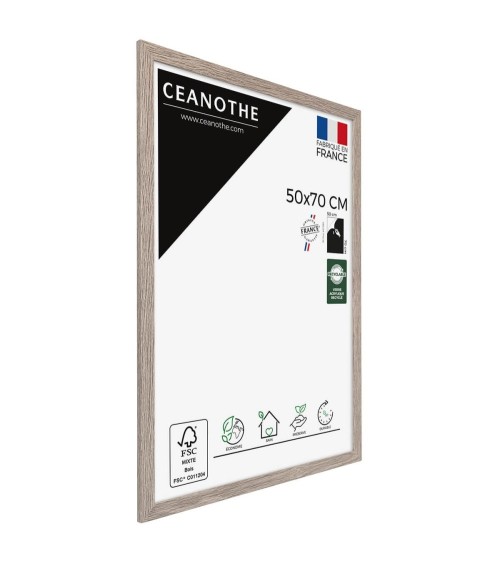 Protégez et mettez en avant toutes vos photos grâce au cadre bois Nordique et son verre acrylique recyclé. Ce cadre photo format 50x70 cm est idéal pour mettre en avant des photos, posters ou affiches grand format de 50x70 cm. Ajoutez un passe-partout pour protéger et mettre en avant dautres formats de photos et posters avec ce cadre.La couleur Taupe de ce cadre est naturel et authentique. Elle fait ressortir toutes vos plus belles uvres et photos tout en apportant un effet naturel haut de gamme à votre intérieur. Cadre Home déco facile à accrocher, il trouvera naturellement sa place dans toutes les pièces de la maison : hall dentrée, salon, chambres à coucher. Le cadre sublimera facilement un grand nombre de photos avec une touche déco très tendance. Ce cadre photo bois 50x70 cm est en bois reconstitué naturel, un matériau solide, naturel et esthétique. Ses dimensions extérieures sont 740x540x12 mm et se compose de 4 baguettes fines travaillées et de qualité. Il apportera de la profondeur à vos photos avec un rendu tendance très qualitatif. Les finitions de ce cadre sont soignées. La couleur de cette gamme Nordique fait de ce cadre une valeur sûre que vous garderez longtemps.Fabriqués en France dans le respect de lenvironnement, tous les cadres de la collection Nordique sont confectionnés à partir de bois reconstitué certifié FSC. Parfait pour la décoration, il est léger et 100% recyclable.Depuis 1975, Ceanothe perfectionne au quotidien son savoir-faire et expertise sur lencadrement, la mise en valeur photographique et la décoration murale. Une société française engagée dans une démarche éco-responsable.