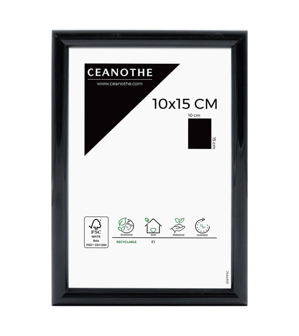 Protégez et mettez en avant toutes vos photos grâce au cadre 10x15 cm Expo et son verre minéral. Ce cadre pour photo 15x10 cm est idéal pour mettre en avant des photos, posters ou affiches format10x15 cm. Ajoutez un passe-partout pour protéger et sublimer dautres formats photo. La gamme Expo propose différentes tailles : cadre format A2, cadre format A3, cadre format A4, format A5 ou format A6. Les cadres 10x15 cm, 13x18 cm, 15x20 cm, 18x24 cm et 21x29.7 cm ont une cravate au dos pour être posés debout. Tous nos cadres peuvent être fixés au mur grâce à leurs attaches. La couleur Noir du cadre est simple, élégante et indémodable. Elle fait ressortir toutes vos plus belles uvres en apportant de la modernité à votre intérieur. Cadre Home déco facile à accrocher, il trouvera sa place dans toutes les pièces de la maison : entrée, salon, chambres. Le cadre sublimera facilement beaucoup de photos avec une touche déco tendance. Idéal pour la décoration et les expositions. Ce cadre photo 15x10 cm est en résine plastique léger, avec un verre minéral. Ses dimensions extérieures sont 16x11x1.8 cm avec 4 baguettes fines et bombées. Il apportera de la profondeur à vos photos avec un rendu design très qualitatif. Les finitions de ce cadre Noir sont soignées. Les teintes sobres font de ce cadre une valeur sûre adaptée aussi bien à la maison que dans une galerie dart. Fabriqués dans le respect de l'environnement, tous les cadres design de la collection Expo sont 100% recyclable.