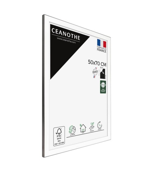 Protégez et mettez en avant toutes vos photos grâce au cadre Acier Newton et son verre acrylique recyclé. Ce cadre photo format 50x70 cm est idéal pour mettre en avant des photos, posters, affiches ou carte postale. Ajoutez un passe-partout pour protéger et sublimer dautres formats photos. La gamme propose différentes tailles et couleurs. La couleur blanche et contour Acier de ce cadre est simple, moderne et indémodable. Elle fait ressortir toutes vos plus belles uvres et photos. Cadre Home déco facile à accrocher, il trouvera naturellement sa place dans toutes les pièces de la maison : hall dentrée, salon, chambres. Le cadre sublimera facilement un grand nombre de photos avec une touche déco contemporaine et tendance. Ce cadre photo 50x70 cm est en résine recyclée, un matériau solide, léger et esthétique. Ses dimensions extérieures sont 750x550x22 mm et se compose de 4 baguettes de qualité. Il apportera de la profondeur à vos photos avec un rendu design, moderne et très qualitatif. Ce cadre apporte une jolie touche décoration industrielle. Les finitions de ce cadre sont soignées. Le style simple et tendance de cette gamme fait de ce cadre une valeur sûre que vous garderez longtemps.Fabriqués dans le respect de lenvironnement, tous les cadres design de la collection Newton sont confectionnés à partir de résine recyclée, léger et 100% recyclable, parfait pour la décoration. Depuis 1975, Ceanothe perfectionne au quotidien son savoir-faire et expertise sur lencadrement, la mise en valeur photographique et la décoration murale. Une société française engagée dans une démarche éco-responsable.