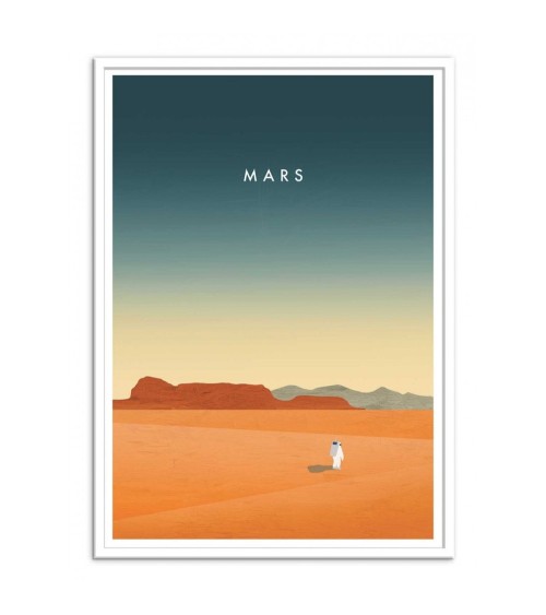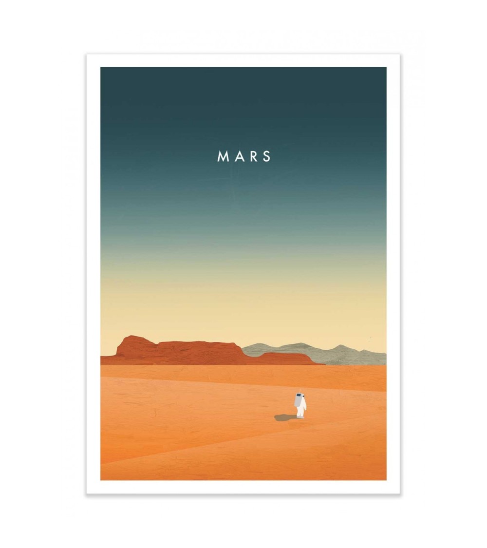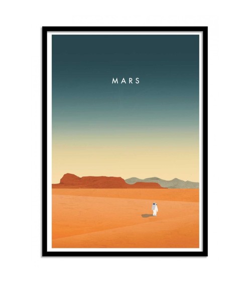 LES AFFICHES : Nos affiches sont imprimées en France, ou Union Européenne.Papier issu de forêts certifiées FSC.Affiche imprimée sur papier couché mat 250g, Haute Définition.Pour les formats d'affiches 30x40 cm : contient des marges blanches de 1,5 cm.Pour les formats d'affiches 50x70 cm : contient des marges blanches de 2 cm.OPTION CADRES : Nos cadres en bois sont fabriqués en France.Comprend une vitre en verre acrylique.Dimensions des cadres en bois 30x40 cm : Epaisseur du cadre : 15 mm, Profondeur du cadre : 20 mmDimensions des cadres en bois 50x70 cm : Epaisseur du cadre : 15 mm. Profondeur du cadre : 20 mm. Ce poster est l'uvre de Katinka Reinke, talentueuse illustratrice mordue de voyages. L'exploration ne se limite pas à la planète Terre. Nous le savons, certaines entreprises travaillent pour un jour nous faire découvrir l'espace et pourquoi pas marcher sur Mars. Et si le rêve devenait effectivement réalité ? Cette décoration murale nous offre l'occasion de nous évader quelques instants, que nous soyons à notre travail, dans notre chambre ou dans le salon de notre maison.
