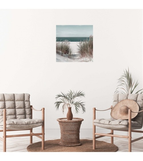 Tableau sur toile Plage et Roseaux 65x65 cm. Cette impression sur toile décorative tendue sur un châssis en bois FSC est imprimée en haute définition grâce à des encres UV sans aucun solvant. Elle est certifiée Origine France Garantie. Fabrication à la commande pour éviter toute surproduction.