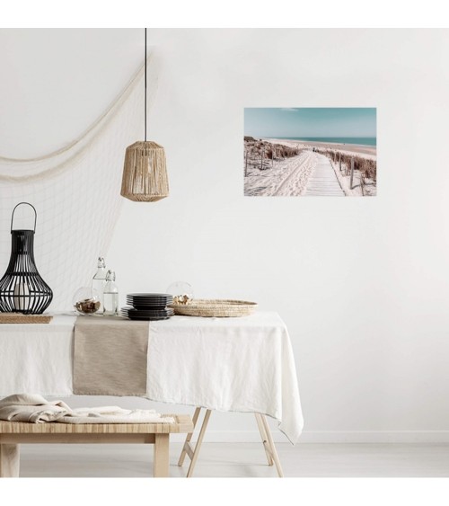 Tableau sur toile Chemin de Plage 30x45 cm. Cette impression sur toile décorative tendue sur un châssis en bois FSC est imprimée en haute définition grâce à des encres UV sans aucun solvant. Elle est certifiée Origine France Garantie. Fabrication à la commande pour éviter toute surproduction.