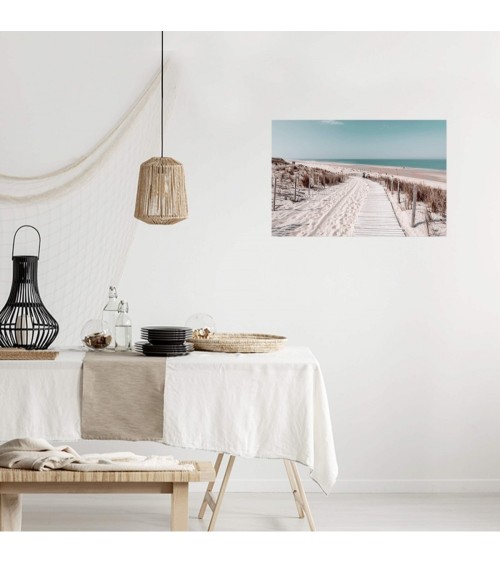Tableau sur toile Chemin de Plage 45x65 cm. Cette impression sur toile décorative tendue sur un châssis en bois FSC est imprimée en haute définition grâce à des encres UV sans aucun solvant. Elle est certifiée Origine France Garantie. Fabrication à la commande pour éviter toute surproduction.