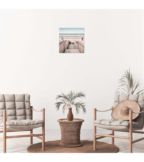 Tableau sur toile Escalier de Plage 30x30 cm. Cette impression sur toile décorative tendue sur un châssis en bois FSC est imprimée en haute définition grâce à des encres UV sans aucun solvant. Elle est certifiée Origine France Garantie. Fabrication à la commande pour éviter toute surproduction.