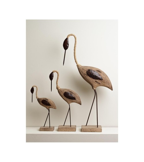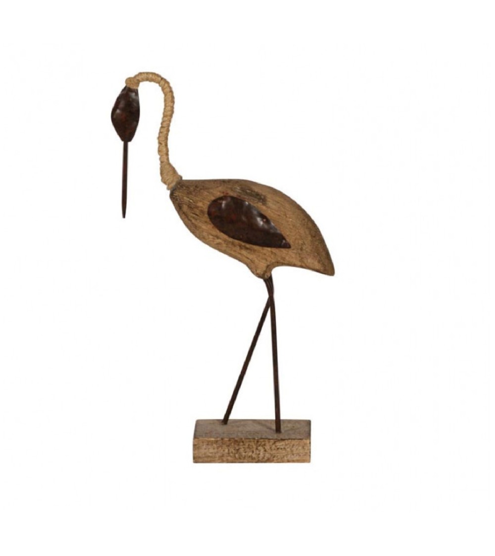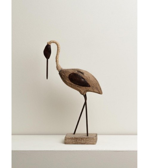 Très bel élément décoratif, cet oiseau sculpté en bois trouve naturellement sa place sur une console, une cheminée, une étagère, à même le sol... Cet échassier en bois et métal apporte une touche déco bord de mer chaleureuse. Dimensions: Hauteur 26.5cm x largeur 6cm x Longueur 15cm - Couleur: Bois et Métal Rouille - Matière: Bois et Métal
