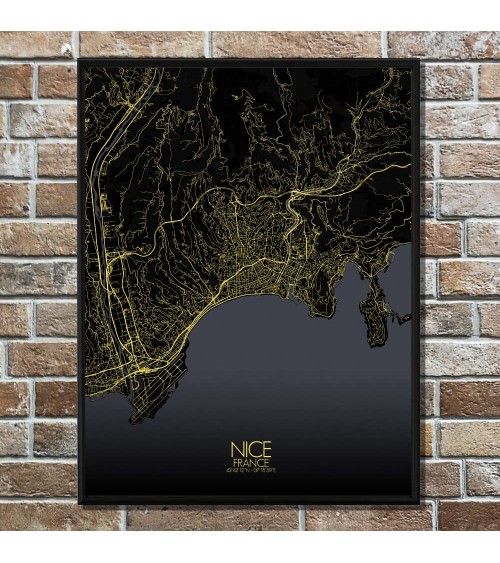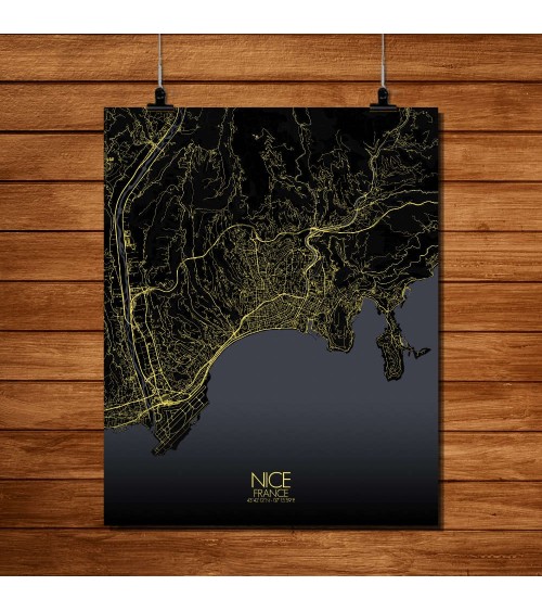 Affiche Nice Carte Nuit 40x50