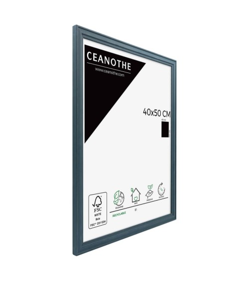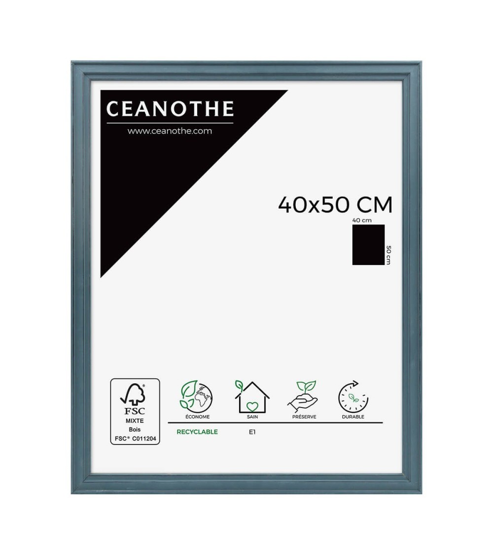 Protégez et mettez en avant toutes vos photos grâce au cadre Bleu Belle-île et son verre minéral. Ce cadre photo format 40x50 cm est idéal pour mettre en avant des photos, posters ou affiches grand format de 40x50 cm. Ajoutez un passe-partout pour protéger et mettre en avant dautres formats de photos et posters avec ce cadre.La couleur Bleu avec finition patinée de ce cadre est authentique et plein de charme. Elle fait ressortir toutes vos plus belles uvres et photos tout en apportant un effet naturel et coloré haut de gamme à votre intérieur. Cadre Home déco facile à accrocher, il trouvera naturellement sa place dans toutes les pièces de la maison : hall dentrée, salon, chambres à coucher. Le cadre sublimera facilement un grand nombre de photos avec une touche déco très tendance. Ce cadre photo bois 50x40 cm est en bois massif naturel, un matériau solide, naturel et esthétique. Ses dimensions extérieures sont 54.2x44.2x1.6 1.6 cm et se compose de 4 baguettes travaillées et de qualité. Il apportera de la profondeur à vos photos avec un rendu design très qualitatif. Les finitions de ce cadre sont soignées. La couleur de cette gamme Belle-île fait de ce cadre une valeur sûre que vous garderez longtemps.Fabriqués en France dans le respect de lenvironnement, tous les cadres de la collection Belle-île sont confectionnés en bois massif certifié FSC. Parfait pour la décoration, il est léger et 100% recyclable.Depuis 1975, Ceanothe perfectionne au quotidien son savoir-faire et expertise sur lencadrement, la mise en valeur photographique et la décoration murale. Une société française engagée dans une démarche éco-responsable.
