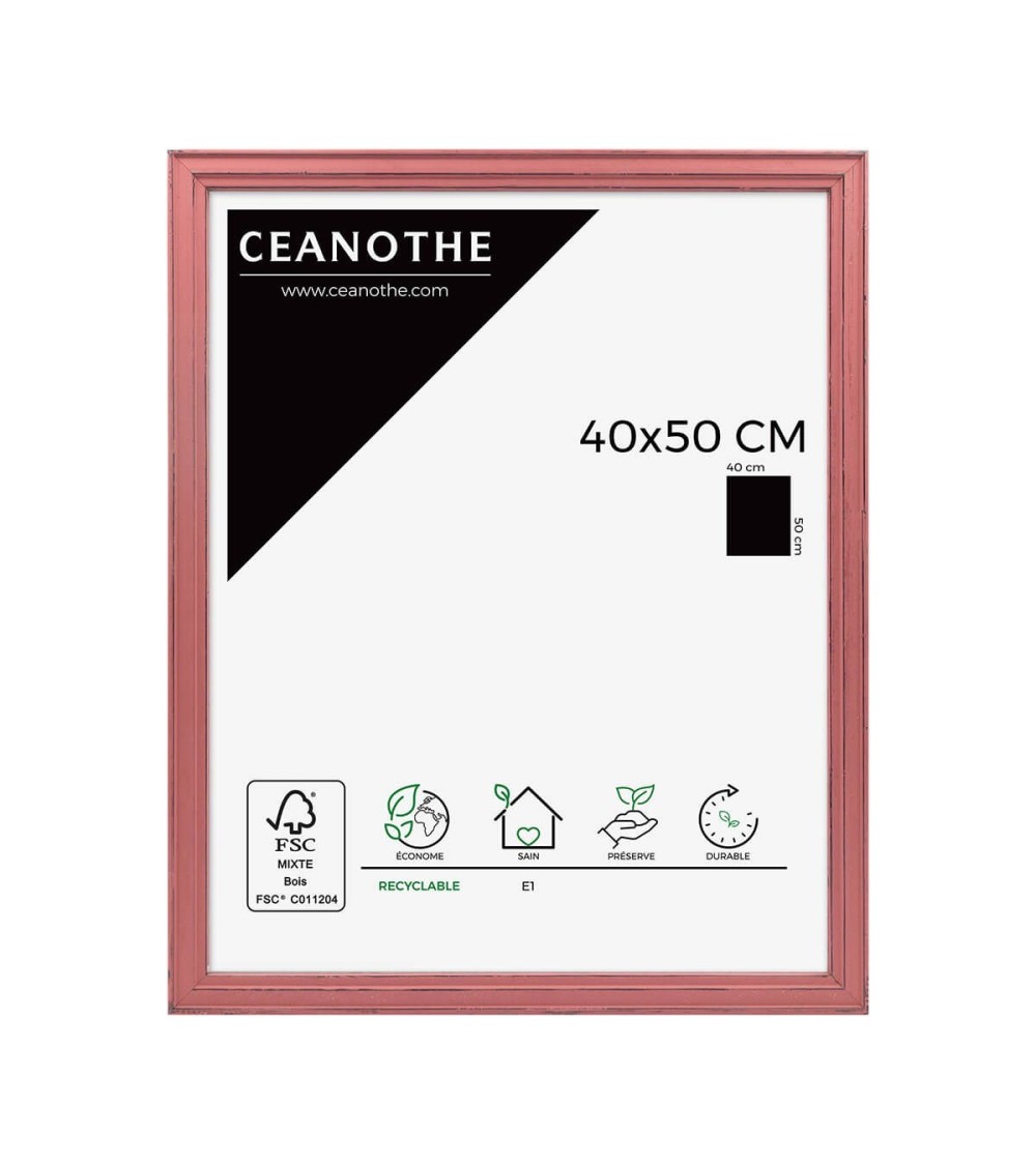Protégez et mettez en avant toutes vos photos grâce au cadre Rouge Belle-île et son verre minéral. Ce cadre photo format 40x50 cm est idéal pour mettre en avant des photos, posters ou affiches grand format de 40x50 cm. Ajoutez un passe-partout pour protéger et mettre en avant dautres formats de photos et posters avec ce cadre.La couleur Rouge avec finition patinée de ce cadre est authentique et plein de charme. Elle fait ressortir toutes vos plus belles uvres et photos tout en apportant un effet naturel et coloré haut de gamme à votre intérieur. Cadre Home déco facile à accrocher, il trouvera naturellement sa place dans toutes les pièces de la maison : hall dentrée, salon, chambres à coucher. Le cadre sublimera facilement un grand nombre de photos avec une touche déco très tendance. Ce cadre photo bois 50x40 cm est en bois massif naturel, un matériau solide, naturel et esthétique. Ses dimensions extérieures sont 54.2x44.2x1.6 1.6 cm et se compose de 4 baguettes travaillées et de qualité. Il apportera de la profondeur à vos photos avec un rendu design très qualitatif. Les finitions de ce cadre sont soignées. La couleur de cette gamme Belle-île fait de ce cadre une valeur sûre que vous garderez longtemps.Fabriqués en France dans le respect de lenvironnement, tous les cadres de la collection Belle-île sont confectionnés en bois massif certifié FSC. Parfait pour la décoration, il est léger et 100% recyclable.Depuis 1975, Ceanothe perfectionne au quotidien son savoir-faire et expertise sur lencadrement, la mise en valeur photographique et la décoration murale. Une société française engagée dans une démarche éco-responsable.