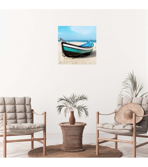 Tableau sur toile Barque Bleue 65x65 cm. Cette impression sur toile décorative tendue sur un châssis en bois FSC est imprimée en haute définition grâce à des encres UV sans aucun solvant. Elle est certifiée Origine France Garantie. Fabrication à la commande pour éviter toute surproduction.