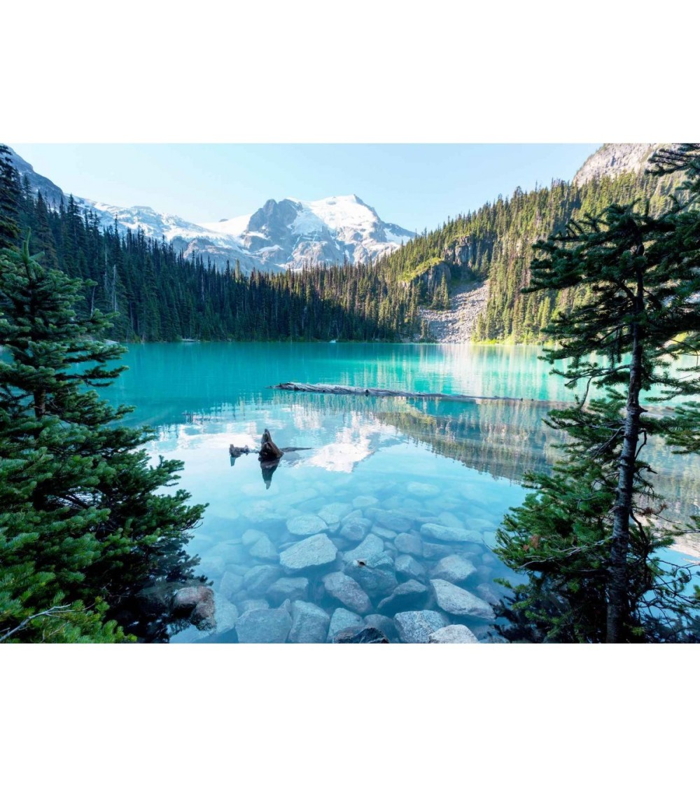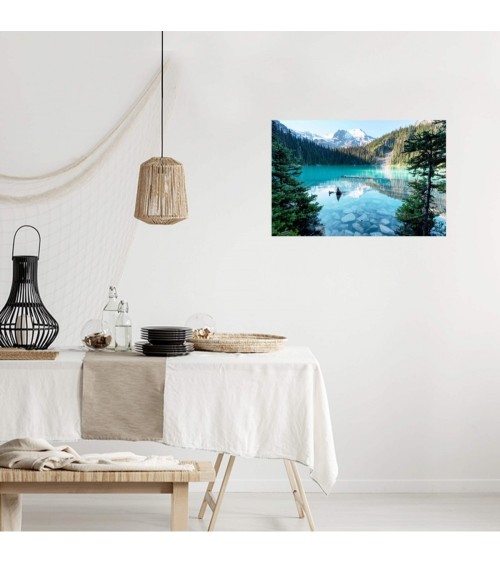 Tableau sur toile Lac Turquoise 45x65 cm. Cette impression sur toile décorative tendue sur un châssis en bois FSC est imprimée en haute définition grâce à des encres UV sans aucun solvant. Elle est certifiée Origine France Garantie. Fabrication à la commande pour éviter toute surproduction.