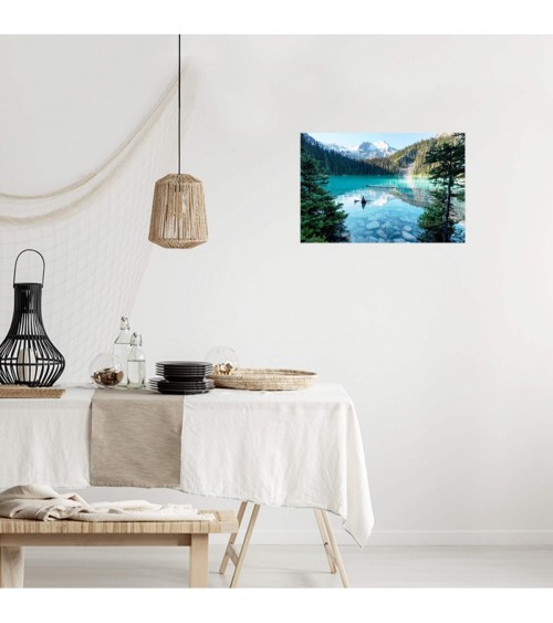 Tableau sur toile Lac Turquoise 30x45 cm. Cette impression sur toile décorative tendue sur un châssis en bois FSC est imprimée en haute définition grâce à des encres UV sans aucun solvant. Elle est certifiée Origine France Garantie. Fabrication à la commande pour éviter toute surproduction.