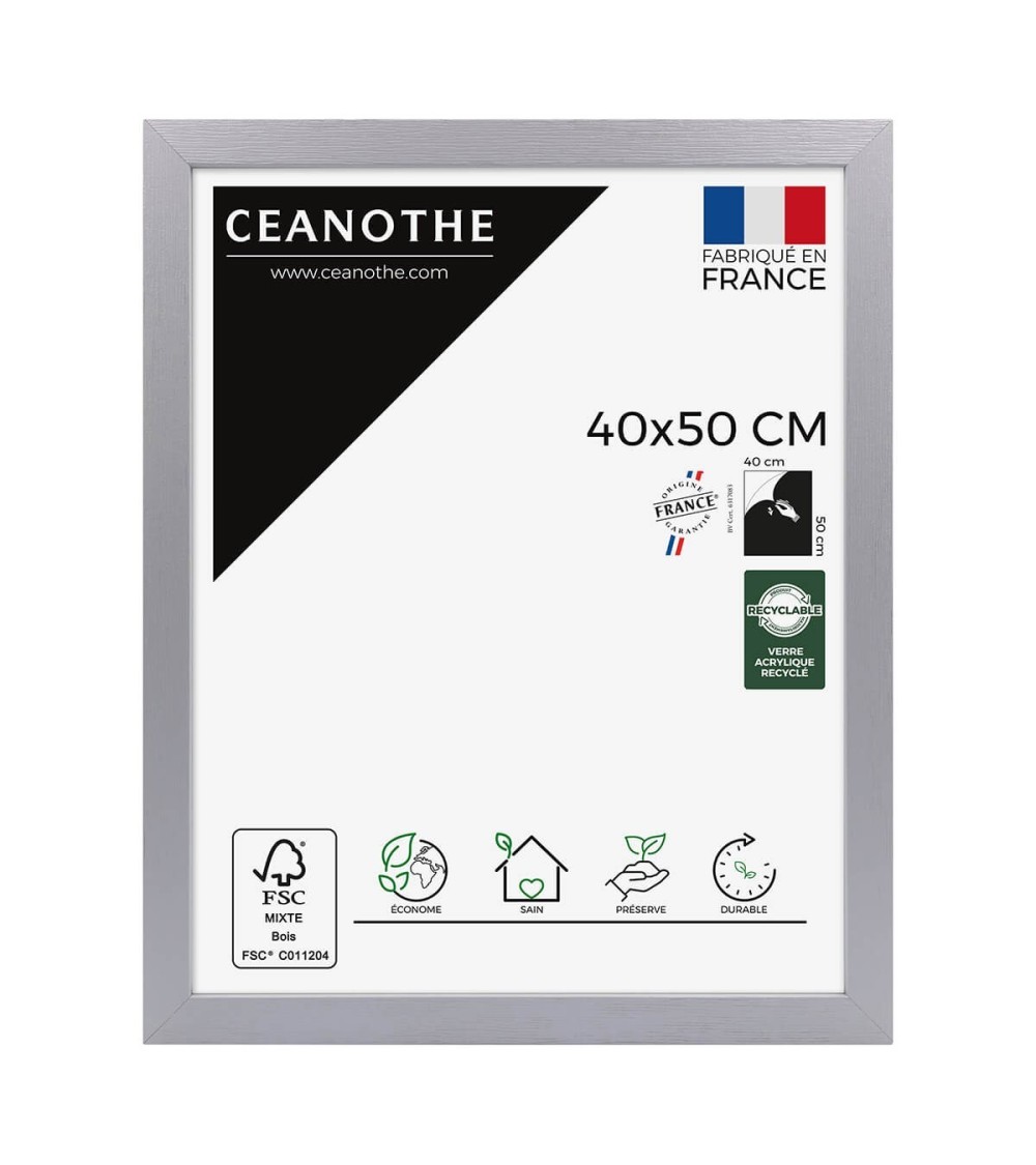 Protégez et mettez en avant toutes vos photos grâce au cadre bois karma et son verre acrylique recyclé. Ce cadre pour photo format 40x50 cm est idéal pour des photos, posters ou affiches 40x50 cm. Ajoutez un passe-partout pour protéger et sublimer d'autres formats de photo. La gamme Karma propose différentes tailles : cadre format A2, cadre format A3, cadre format A4, format A5 ou format A6. La couleur Bois Gris du cadre est indémodable. Elle fait ressortir toutes vos plus belles uvres tout en apportant douceur et modernité à votre intérieur. Cadre Home déco facile à accrocher, il trouvera sa place dans toutes les pièces de la maison : hall d'entrée, salon, chambres. Ce cadre photo bois 50x40 cm est en bois naturel, un matériau solide, nature et esthétique, avec un verre minéral. Ses dimensions extérieures sont 54.8x44.8x1.2 cm avec 4 baguettes bois nervurées larges et plates. Il apportera de la profondeur à vos photos avec un rendu design et très qualitatif. Les finitions de ce cadre en bois sont lisses et soignées. Les teintes douces de cette gamme Karma font de ce cadre une valeur sûre que vous garderez longtemps. Fabriqués dans le respect de l'environnement, tous les cadres design de la collection Karma sont confectionnés à partir de bois naturel de pin certifié FSC. Idéal pour la décoration. Il est léger et 100% recyclable.