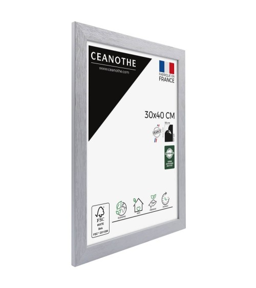 Protégez et mettez en avant toutes vos photos grâce au cadre bois karma et son verre acrylique recyclé. Ce cadre pour photo format 30x40 cm est idéal pour des photos, posters ou affiches 30x40 cm. Ajoutez un passe-partout pour protéger et sublimer d'autres formats de photo. La gamme Karma propose différentes tailles : cadre format A2, cadre format A3, cadre format A4, format A5 ou format A6. La couleur Bois Gris du cadre est indémodable. Elle fait ressortir toutes vos plus belles uvres tout en apportant douceur et modernité à votre intérieur. Cadre Home déco facile à accrocher, il trouvera sa place dans toutes les pièces de la maison : hall d'entrée, salon, chambres. Ce cadre photo bois 40x30 cm est en bois naturel, un matériau solide, nature et esthétique, avec un verre minéral. Ses dimensions extérieures sont 44.8x34.8x1.2 cm avec 4 baguettes bois nervurées larges et plates. Il apportera de la profondeur à vos photos avec un rendu design et très qualitatif. Les finitions de ce cadre en bois sont lisses et soignées. Les teintes douces de cette gamme Karma font de ce cadre une valeur sûre que vous garderez longtemps. Fabriqués dans le respect de l'environnement, tous les cadres design de la collection Karma sont confectionnés à partir de bois naturel de pin certifié FSC. Idéal pour la décoration. Il est léger et 100% recyclable.