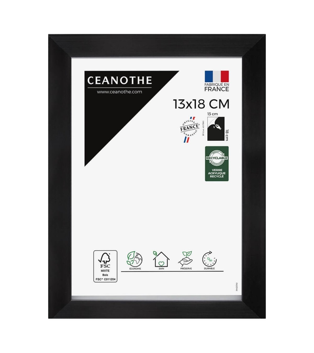 Protégez et mettez en avant toutes vos photos grâce au cadre Precious et son verre acrylique recyclé. Ce cadre photo format 13x18 cm est idéal pour mettre en avant des photos, posters ou affiches de 13x18 cm. Ajoutez un passe-partout pour protéger et mettre en avant dautres formats de photos et posters avec ce cadre.La couleur Gris avec finition laquée de ce cadre est moderne et indémodable. Elle fait ressortir toutes vos plus belles uvres et photos tout en apportant un effet élégant à votre intérieur. Cadre Home déco facile à accrocher, il trouvera naturellement sa place dans toutes les pièces de la maison : hall dentrée, salon, chambres à coucher. Le cadre sublimera facilement un grand nombre de photos avec une touche déco très tendance. Ce cadre photo 13x18 cm est en résine recyclée, un matériau solide et esthétique. Ses dimensions extérieures sont 207x157x25 mm et se compose de 4 baguettes travaillées de qualité. Il apportera de la profondeur à vos photos avec un rendu design très qualitatif. Les finitions de ce cadre sont soignées. La couleur de cette gamme Precious fait de ce cadre une valeur sûre que vous garderez longtemps. Depuis 1975, Ceanothe perfectionne au quotidien son savoir-faire et expertise sur lencadrement, la mise en valeur photographique et la décoration murale. Une société française engagée dans une démarche éco-responsable.
