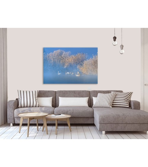 Tableau cygnes dans le givre matinal toile imprimée 100x60cm