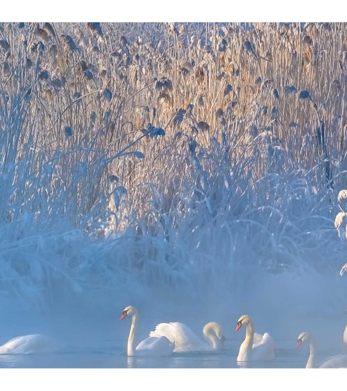 Tableau cygnes dans le givre matinal toile imprimée 80x50cm