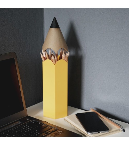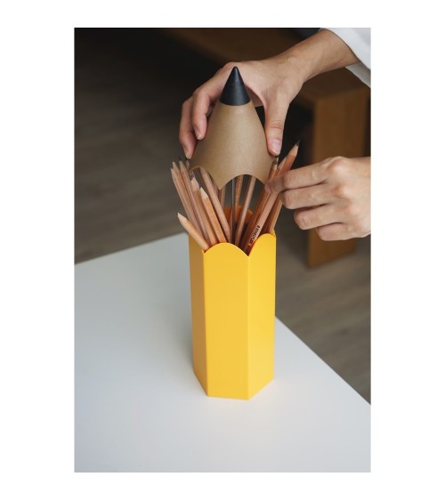 Une idée simple et efficace : un pot à crayons en forme de crayon ! Très pratique, il suffit de soulever la pointe pour qu'apparaisse tous vos stylos et crayons. Dimensions : H 28 x diam. 8cm Matière : green abs