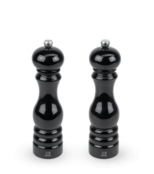 Duo de moulins à poivre et à sel en bois laqué noir H22cm