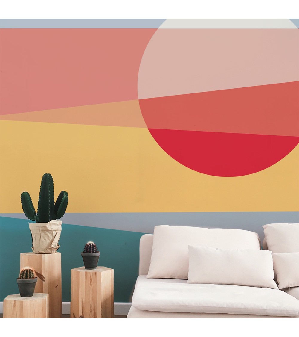 Ce papier peint redéfinit les lignes d'horizon et les couleurs du paysage tout en dynamisant votre intérieur. Papier peint Intissé Lavable Lisse Mat 150g sans PVC à encoller - Encres Latex sans solvant et sans COV - Fabrication Française.3 couleurs au choix : Vert, orange et jaune5 tailles au choix : - M : Lg 170 x Ht 250 cm en 2 lés de 85 cm- L : Lg 255 x Ht 250 cm en 3 lés de 85 cm- XL : Lg 340 x Ht 250 cm en 4 lés de 85 cm- XXL : Lg 425 x Ht 250 cm en 5 lés de 85 cm- 3XL : Lg 510 x Ht 250 cm en 6 lés de 85 cm. Pose bord à bord pour une pose facile. Intissé à base de fibres cellulosiques et polyester liées par un acrylique sans PVC 150g. Impression encres Latex sans solvant et sans COV.Aspect mat lisse (calandré). Très bon rendu des couleurs. Très bonne stabilité dimensionnelle. Cache les petites imperfections du mur, la préparation du mur est simplifiée. Bonne résistance à la déchirure lors de la pose. Pose facile. Se nettoie avec un léger coup d'éponge à l'eau savonneuse.