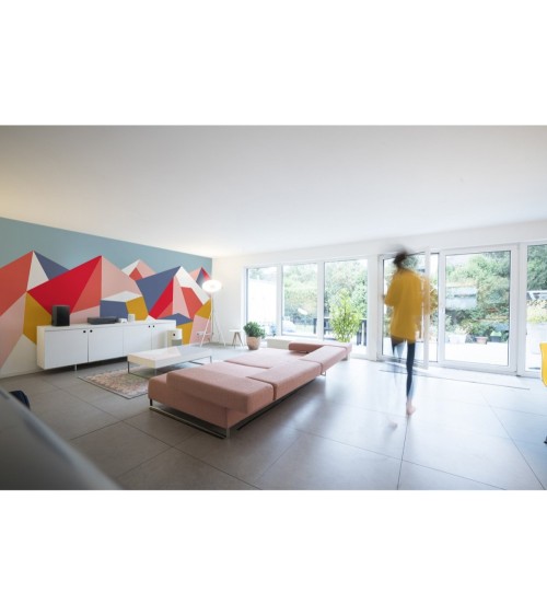 Entre paysages graphiques et conception architecturale, ces papiers peints panoramiques transforment votre intérieur et apportent de la couleur à vos murs. Papier peint Intissé Lavable Lisse Mat 150g sans PVC à encoller - Encres Latex sans solvant et sans COV - Fabrication Française4 couleurs au choix : Rose, bleu, rouge et vert5 tailles au choix : - M : Lg 170 x Ht 250 cm en 2 lés de 85 cm- L : Lg 255 x Ht 250 cm en 3 lés de 85 cm- XL : Lg 340 x Ht 250 cm en 4 lés de 85 cm- XXL : Lg 425 x Ht 250 cm en 5 lés de 85 cm- 3XL : Lg 510 x Ht 250 cm en 6 lés de 85 cm. Pose bord à bord pour une pose facile.Intissé à base de fibres cellulosiques et polyester liées par un acrylique sans PVC 150g. Impression encres Latex sans solvant et sans COV.Aspect mat lisse (calandré). Très bon rendu des couleurs. Très bonne stabilité dimensionnelle. Cache les petites imperfections du mur, la préparation du mur est simplifiée. Bonne résistance à la déchirure lors de la pose. Pose facile.Se nettoie avec un léger coup d'éponge à l'eau savonneuse.