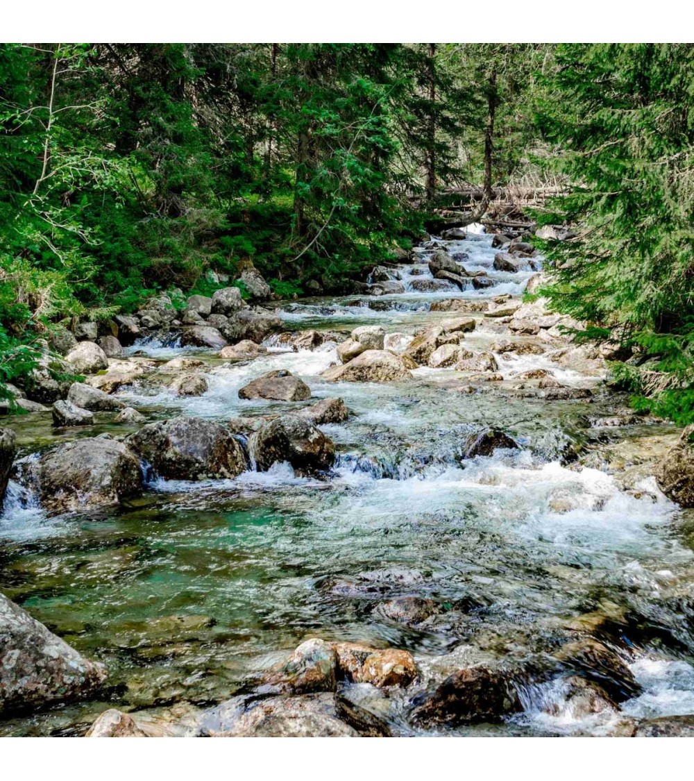 Tableau sur toile rivière dans la forêt 45x45 cm. Cette impression sur toile décorative tendue sur un châssis en bois FSC est imprimée en haute définition grâce à des encres UV sans aucun solvant. Elle est certifiée Origine France Garantie. Fabrication à la commande pour éviter toute surproduction.