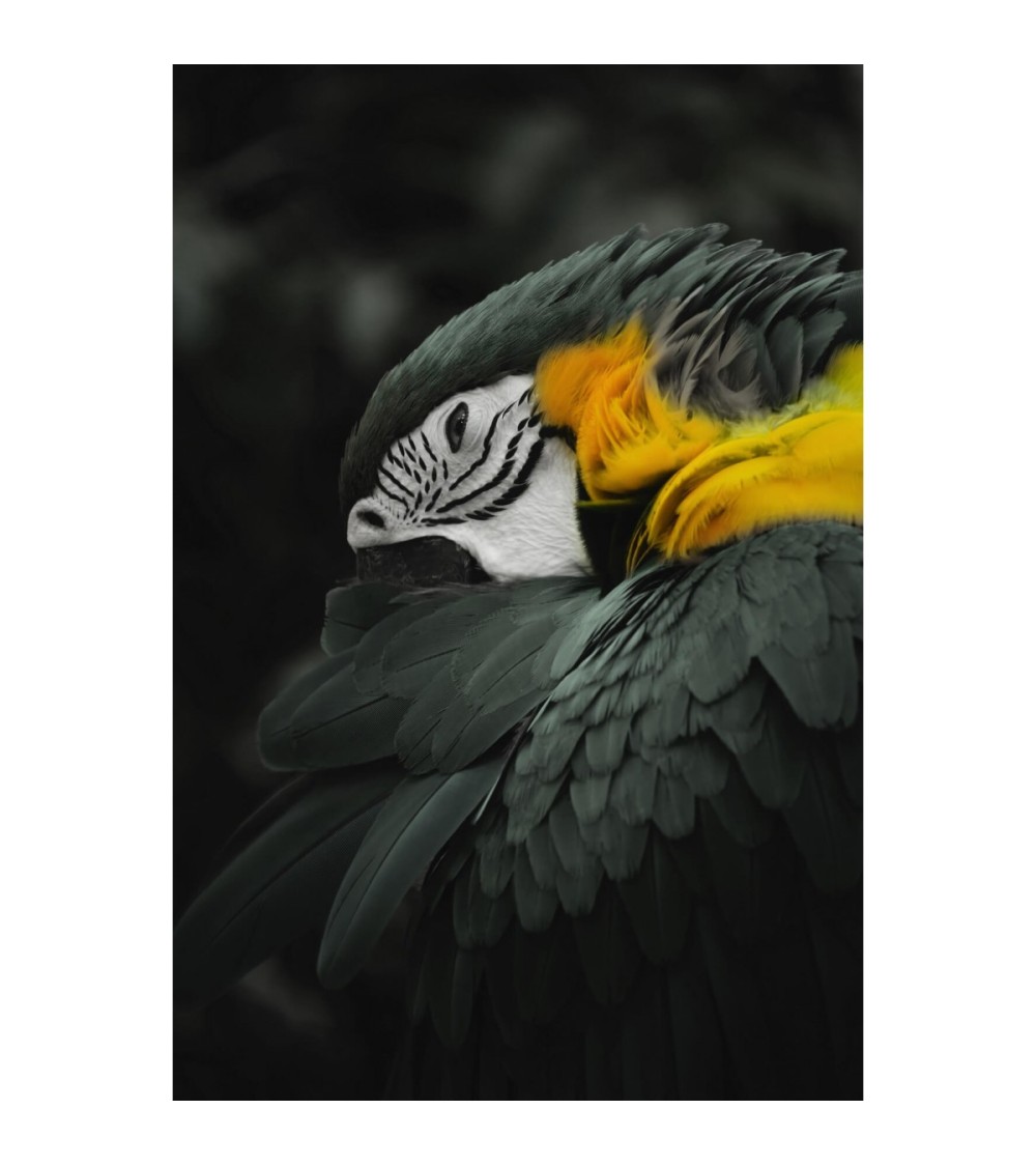 Tableau sur toile perroquet 45x65 cm. Cette impression sur toile décorative tendue sur un châssis en bois FSC est imprimée en haute définition grâce à des encres UV sans aucun solvant. Elle est certifiée Origine France Garantie. Fabrication à la commande pour éviter toute surproduction.