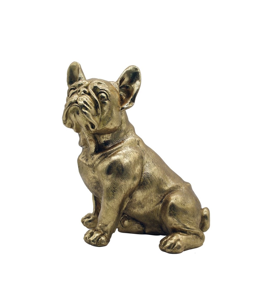 Cette statue est parfaite pour les amoureux des chiens. Ce petit bouledogue en résine doré trouvera sa place sur une console un buffet.Dimensions : 24,5x27,5cmMatière : résineCouleur :or