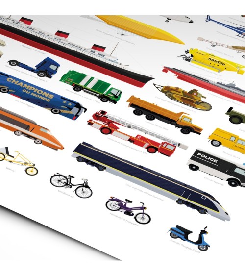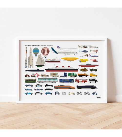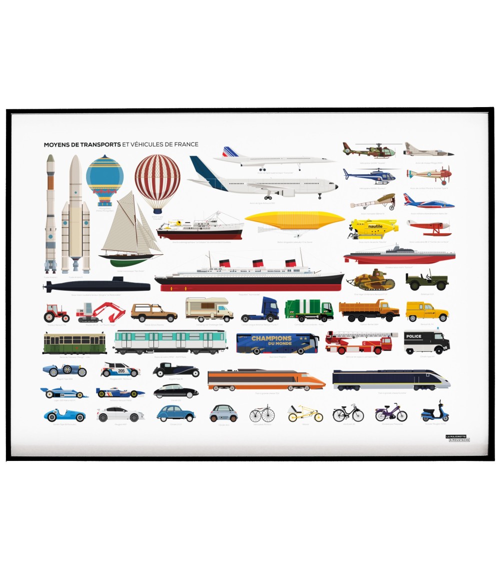 Affiche d'art Moyens de transports et véhicules de France 50 X 70 cm