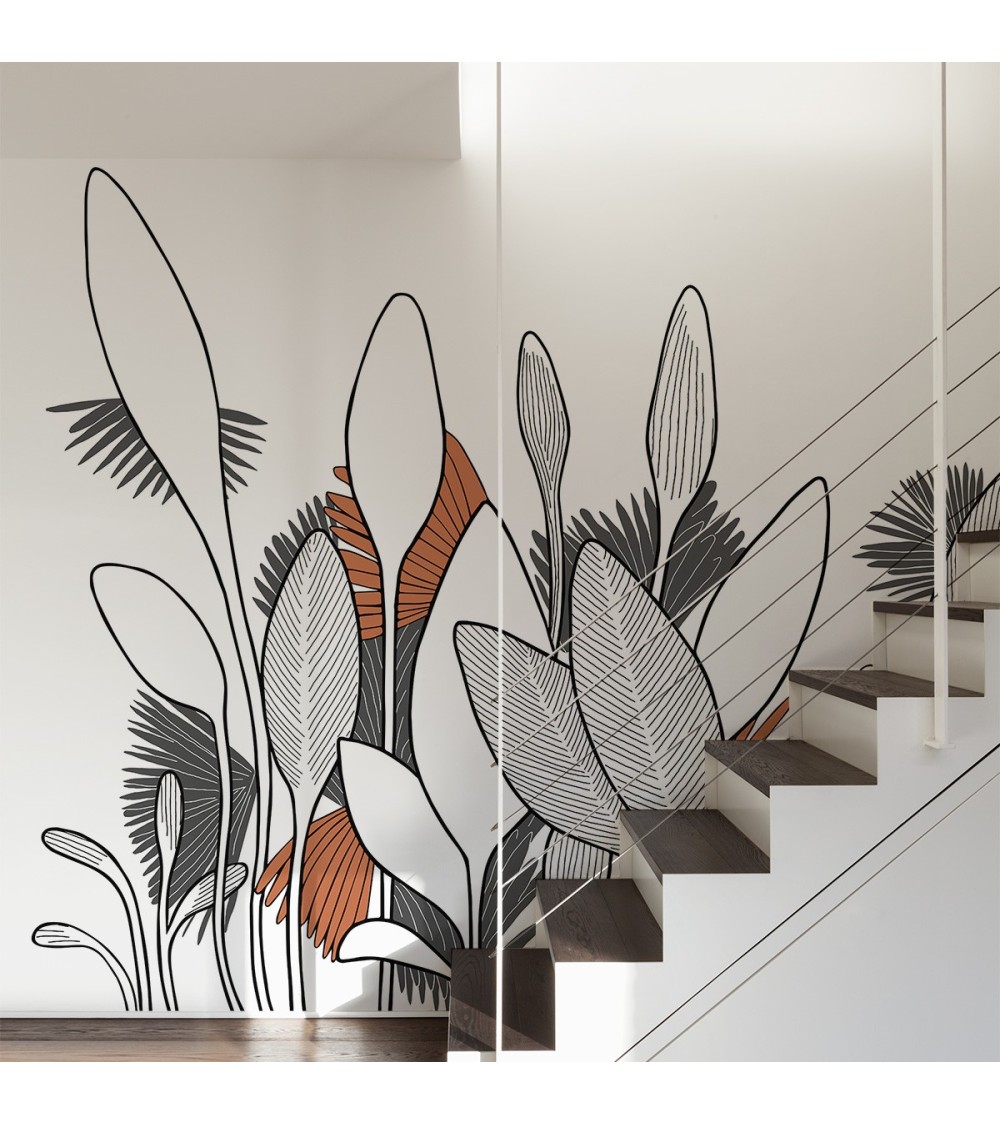 Entre végétal et paysages du sud de la France, les papiers peints panoramiques d'Elisabeth Pesé apportent du bonheur et du rêve dans vos intérieurs.Papier peint Intissé Lavable Lisse Mat 150g sans PVC à encoller - Encres Latex sans solvant et sans COV - Fabrication Française.4 couleurs au choix : Vert, gris, brun et bleu4 tailles au choix : - M : Lg 170 x Ht 250 cm en 2 lés de 85 cm- L : Lg 255 x Ht 250 cm en 3 lés de 85 cm- XL : Lg 340 x Ht 250 cm en 4 lés de 85 cm- XXL : Lg 425 x Ht 250 cm en 5 lés de 85 cmPose bord à bord pour une pose facile.Intissé à base de fibres cellulosiques et polyester liées par un acrylique sans PVC 150g. Impression encres Latex sans solvant et sans COV.Aspect mat lisse (calandré). Très bon rendu des couleurs. Très bonne stabilité dimensionnelle. Cache les petites imperfections du mur, la préparation du mur est simplifiée. Bonne résistance à la déchirure lors de la pose.Pose facile. Se nettoie avec un léger coup d'éponge à l'eau savonneuse.Pose simple avec encollage du mur.