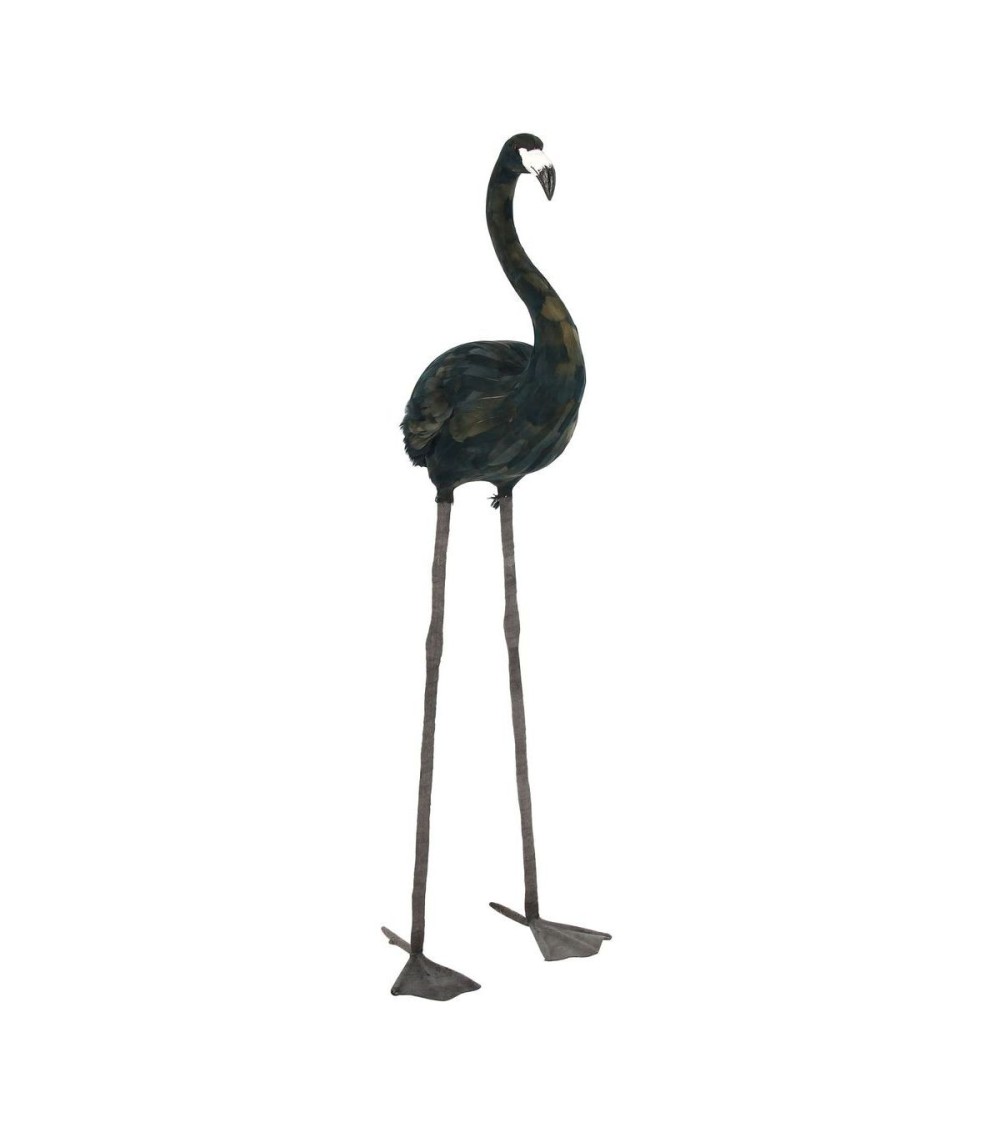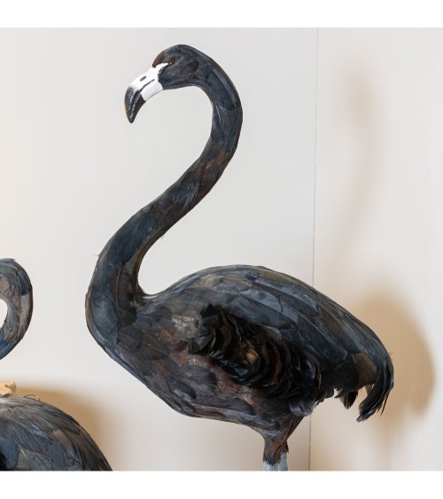 Le flamant s'invite en décoration et sa tendance flamingo saura sublimer un univers exotique... Ce flamant noir, réalisé à la main avec de véritables plumes d'oies, fera son plus bel effet et surprendra de par son coté raffiné et décalé. Plumes d'oie Fait main DIM : 38x26x120 Nettoyer à l'aide d'un chiffon sec