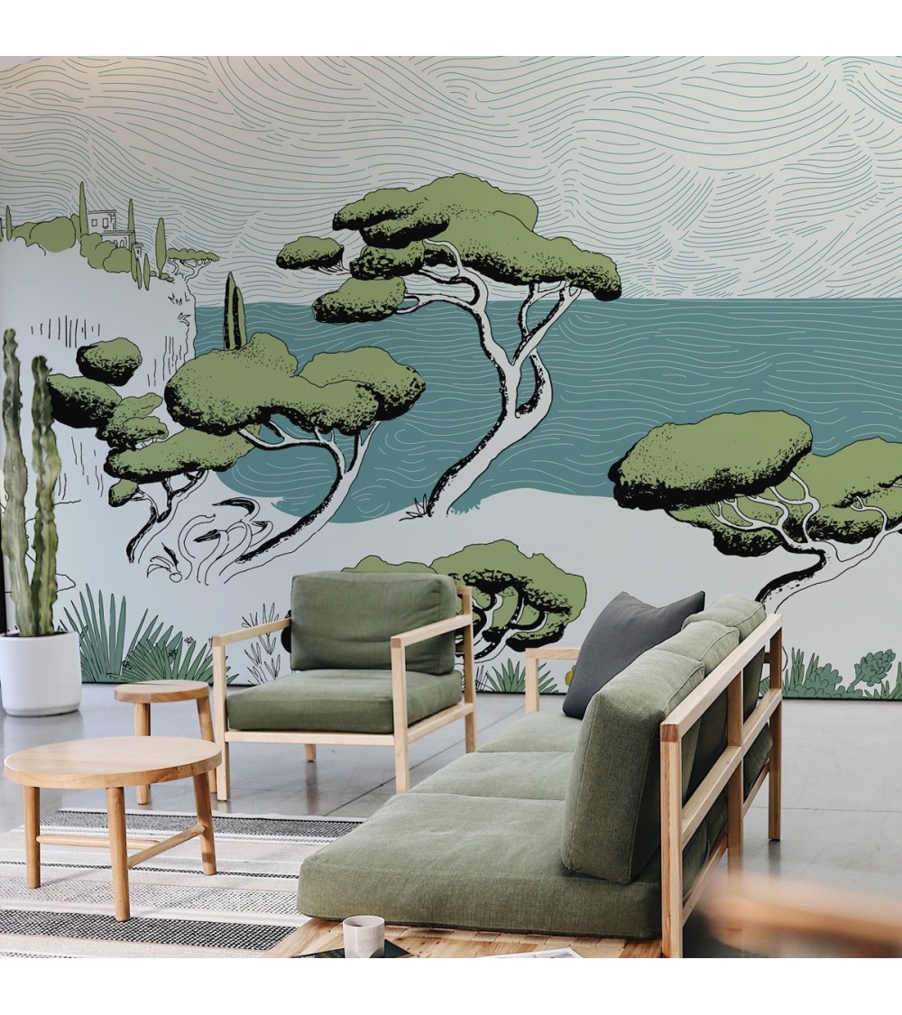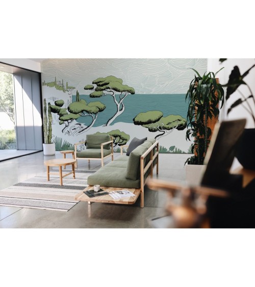 Entre végétal et paysages du sud de la France, les papiers peints panoramiques d'Elisabeth Pesé apportent du bonheur et du rêve dans vos intérieurs. Papier peint Intissé Lavable Lisse Mat 150g sans PVC à encoller - Encres Latex sans solvant et sans COV - Fabrication Française2 couleurs au choix : bleu et blanc4 tailles au choix : - M : Lg 170 x Ht 250 cm en 2 lés de 85 cm- L : Lg 255 x Ht 250 cm en 3 lés de 85 cm- XL : Lg 340 x Ht 250 cm en 4 lés de 85 cm- XXL : Lg 425 x Ht 250 cm en 5 lés de 85 cmPose bord à bord pour une pose facile. Intissé à base de fibres cellulosiques et polyester liées par un acrylique sans PVC 150g. Impression encres Latex sans solvant et sans COV.Aspect mat lisse (calandré). Très bon rendu des couleurs. Très bonne stabilité dimensionnelle. Cache les petites imperfections du mur, la préparation du mur est simplifiée. Bonne résistance à la déchirure lors de la pose. Pose facile. Se nettoie avec un léger coup d'éponge à l'eau savonneuse.Pose simple avec encollage du mur.