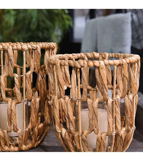 Photophore en jacinthe d'eau naturel 20X20X23 cm