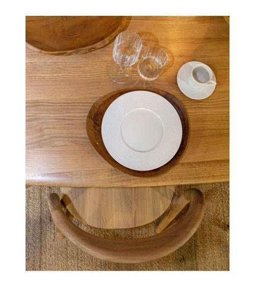 Cette jolie coupe plate en teck massif peut également servir en dessous d'assiette ,et apportera une touche nature sur votre table ou dans votre intérieur . coupe plate en bois de teck massif Nettoyage au chiffon sec Ne pas placer près des sources de chaleur ou au soleil Dimensions : 27 x 30 cm Nettoyer à l'aide d'un chiffon sec