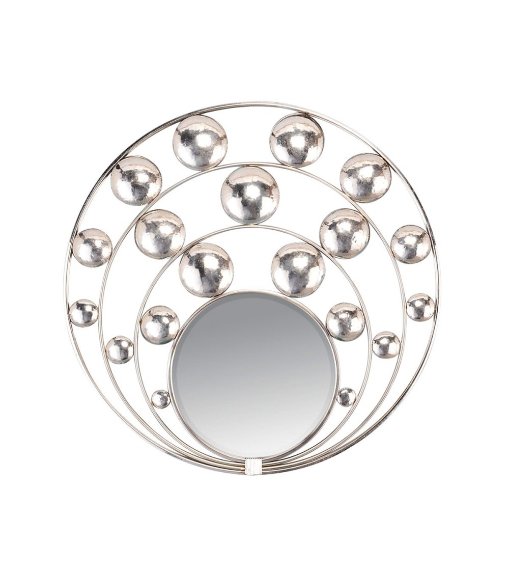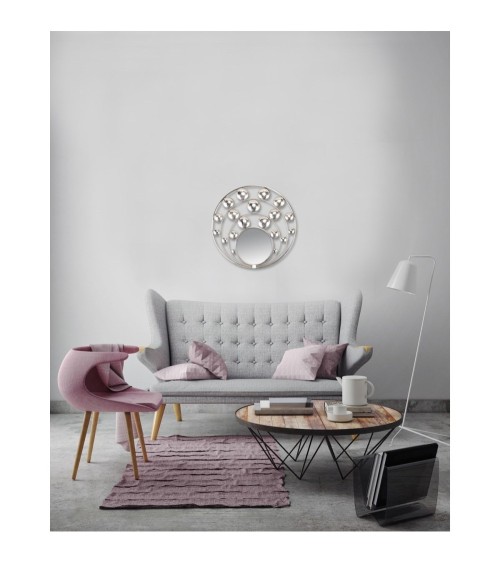 Miroir Design Atome, argenté, de diamètre 89cm.Poids : 3,1 kgsConseil d'entretien : essuyer avec un chiffon doux et sec