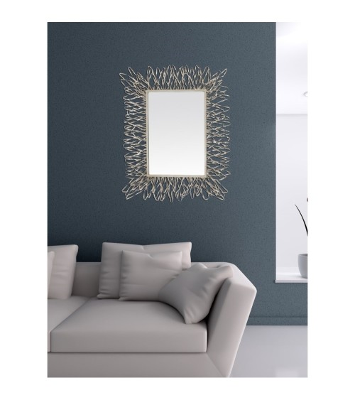 Miroir filaire argenté, de dimensions intérieures 38x54cm et extérieures 71x87cm.Composition détaillée : Métal, verre