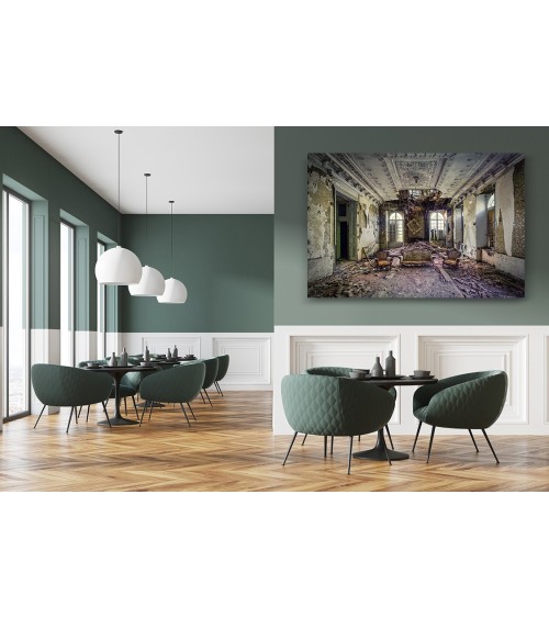 Photographie d'art de l'artiste Gaëtan Chambon sur support Alu-Dibond au format 40x60 cm.Chassis rentrant au dos inclus pour un accrochage simple et une belle mise en valeur de la photo.Le tirage est délivré avec certificat d'authencité.Description de la photographie : Dans le silence seffondrent les souvenirs laissant comme spectacle les stigmates du temps.Localisation : Belgique 2016Présentation de l'artiste :Artenza vous présente Gaëtan Chambon, photographe autodidacte et professionnel. Il photographie régulièrement le patrimoine à labandon qui lentoure. Que ce soit des ruines, châteaux, véhicules ou encore des usines. Toute cette décrépitude apporte une émotion particulière aux lieux quil photographie.