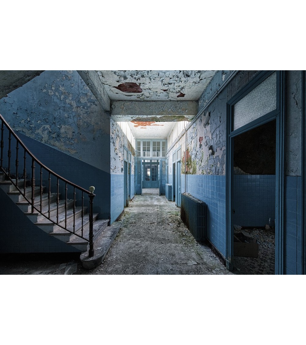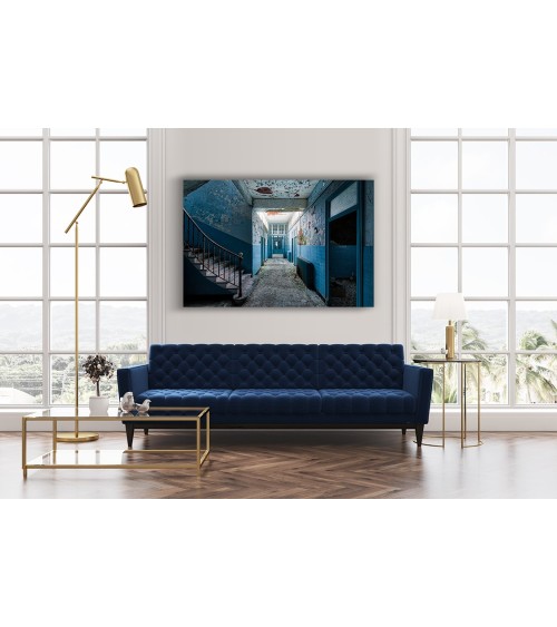 Photographie d'art de l'artiste Gaëtan Chambon sur support Alu-Dibond au format 30x45 cm.Chassis rentrant au dos inclus pour un accrochage simple et une belle mise en valeur de la photo.Le tirage est délivré avec certificat d'authencité.Description de la photographie : Les couloirs du temps en décrépitude rythmés aux couleurs océaniques.Localisation : France 2019Présentation de l'artiste :Artenza vous présente Gaëtan Chambon, photographe autodidacte et professionnel. Il photographie régulièrement le patrimoine à labandon qui lentoure. Que ce soit des ruines, châteaux, véhicules ou encore des usines. Toute cette décrépitude apporte une émotion particulière aux lieux quil photographie.