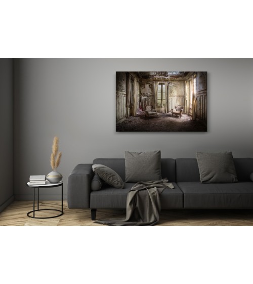 Photographie d'art de l'artiste Gaëtan Chambon sur support Alu-Dibond au format 40x60 cm.Chassis rentrant au dos inclus pour un accrochage simple et une belle mise en valeur de la photo.Le tirage est délivré avec certificat d'authencité.Description de la photographie : De longues heures passées à parler du futur que lon contemple à présent.Localisation : France 2016Présentation de l'artiste :Artenza vous présente Gaëtan Chambon, photographe autodidacte et professionnel. Il photographie régulièrement le patrimoine à labandon qui lentoure. Que ce soit des ruines, châteaux, véhicules ou encore des usines. Toute cette décrépitude apporte une émotion particulière aux lieux quil photographie.