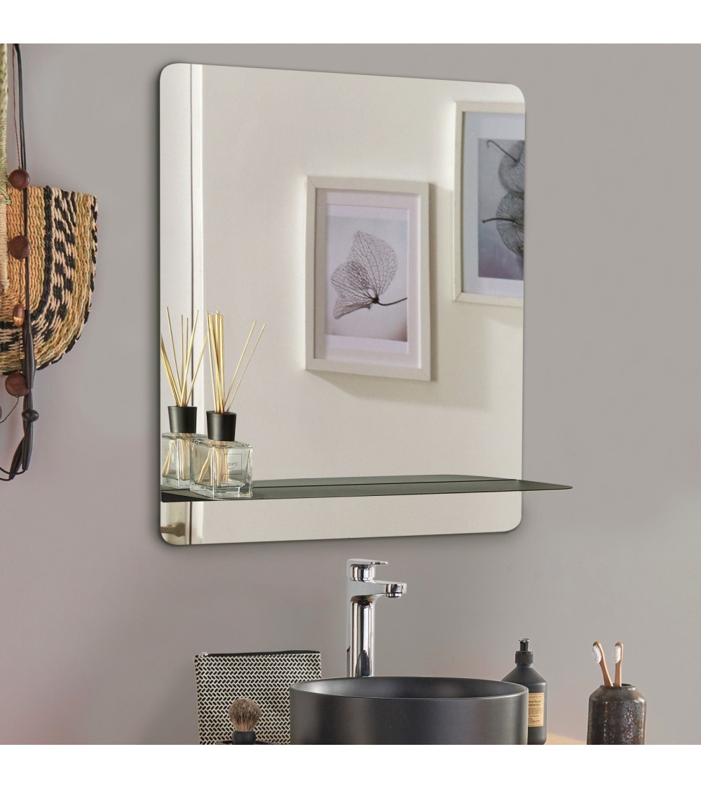 Le miroir de salle de bain avec tablette SORRENTO est un ajout élégant et pratique à tout intérieur. Il possède une tablette métallique noire, pour un rangement facile et rapide de vos produits de toilette. Crèmes, cosmétiques, produits de maquillage et produits d'hygiène resteront toujours à portée de main ! Conçu pour une utilisation quotidienne, il possède un design sobre et moderne. En outre, le miroir de salle de bain avec tablette s'harmonise avec tous les styles de meubles. Et notamment avec notre sélection de meubles de salle de bain. Il est également facile à installer et à utiliser. Il s'agit d'un élément indispensable pour une salle de bain moderne et fonctionnelle.Le miroir de salle de bain avec tablette est l'accessoire de salle de bain ultime. Il vous offre non seulement un miroir de qualité supérieure pour vous maquiller, vous raser et vous coiffer, mais aussi une tablette pratique pour y poser vos accessoires de toilette, votre téléphone ou votre tablette. Avec son design moderne et élégant, il s'intégrera parfaitement à tout décor de salle de bain. Ne manquez pas l'occasion d'améliorer votre expérience de salle de bain en achetant ce miroir avec tablette dès maintenant !Le poids maximum supporté par la tablette est de 3 kg.Dimensions : L60 x H70 x P10 cm.